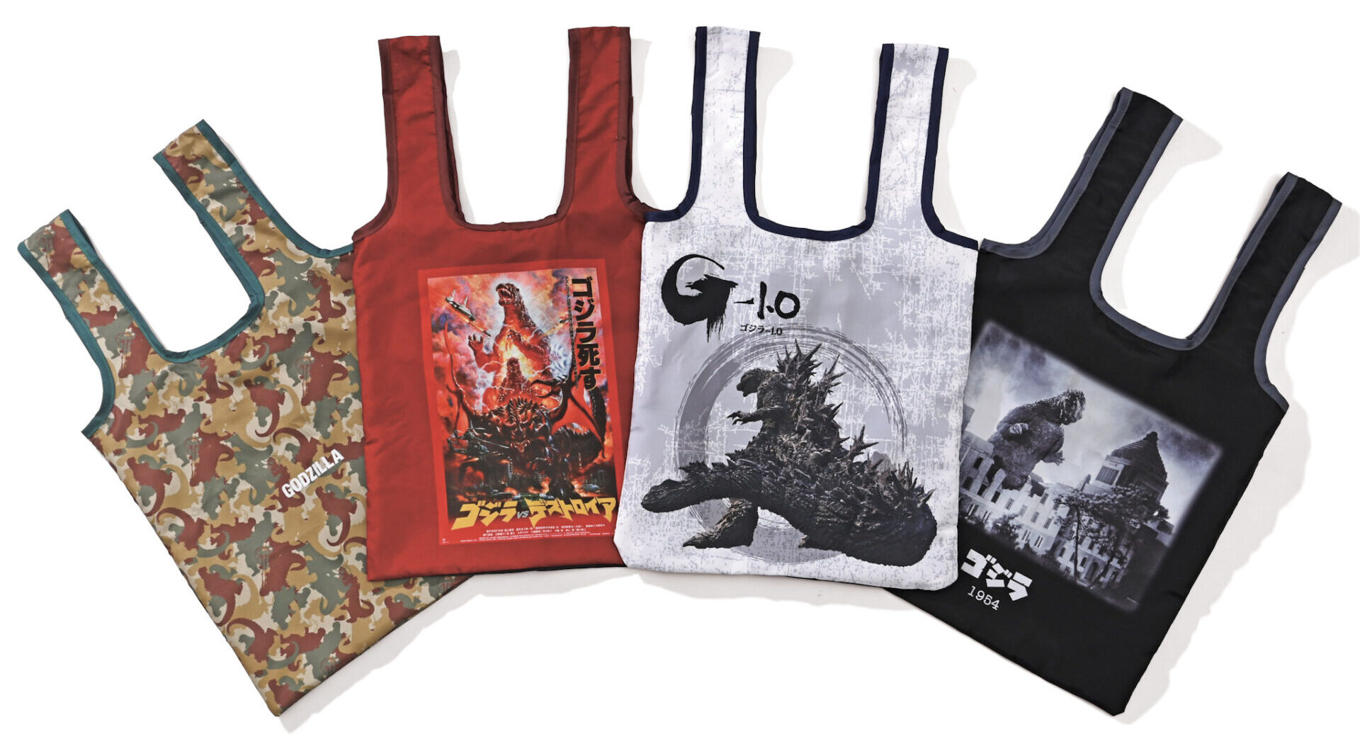 『ゴジラ-1.0』をはじめ、歴代のゴジラがデザインされたエコバッグが登場。縦・横30㎝の大容量サイズで、使わないときは内ポケットにくるんと収納できる優れモノ。