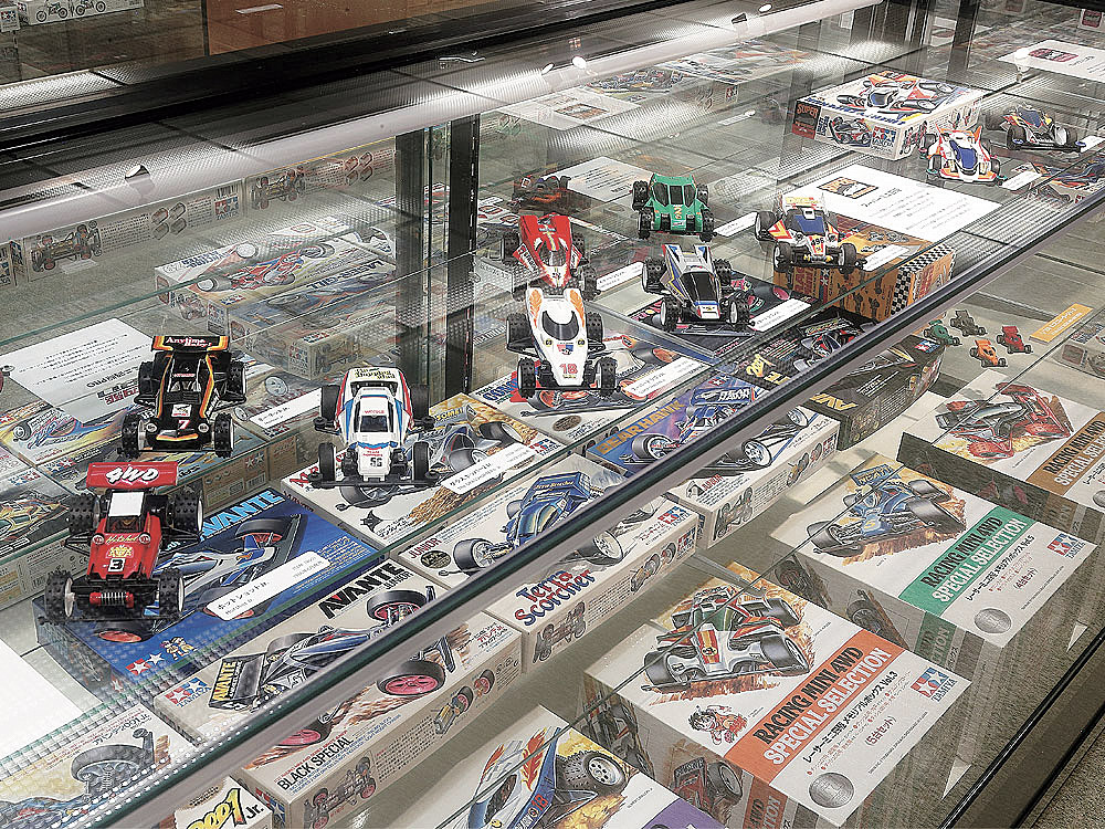 田宮歴史館は、単なる展示スペースではない。戦後間もない木製模型の時代から、世界を席巻したRCカー、そしてミニ四駆ブームまで。日本の模型文化そのものをたどるタイムラインだ。展示されているさまざまなパッケージアートや初期キットを目にすると、子どものころの記憶がふっと蘇るはず。