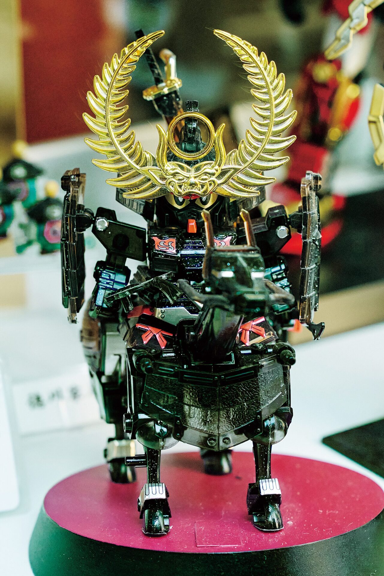 小さいながら威厳たっぷりな〝SDガンダムBB戦士徳川家康頑駄無漆黒の鎧版〟。前立や刀のつばは金メッキ仕立てで、細部まで抜かりなし。