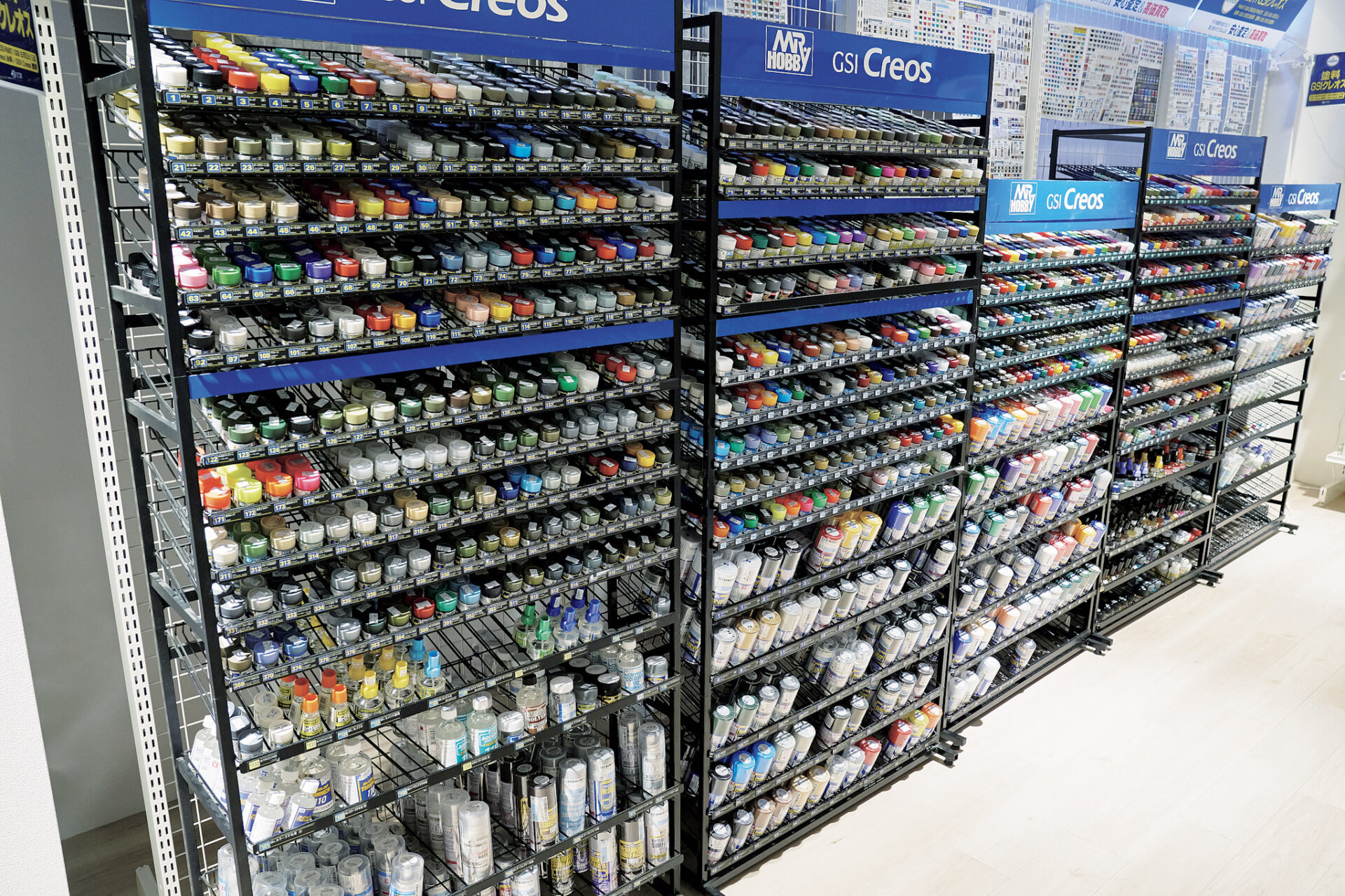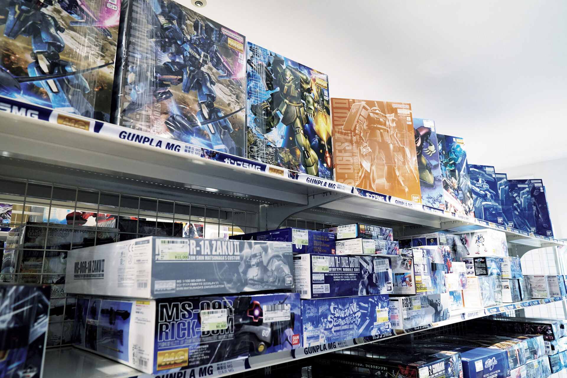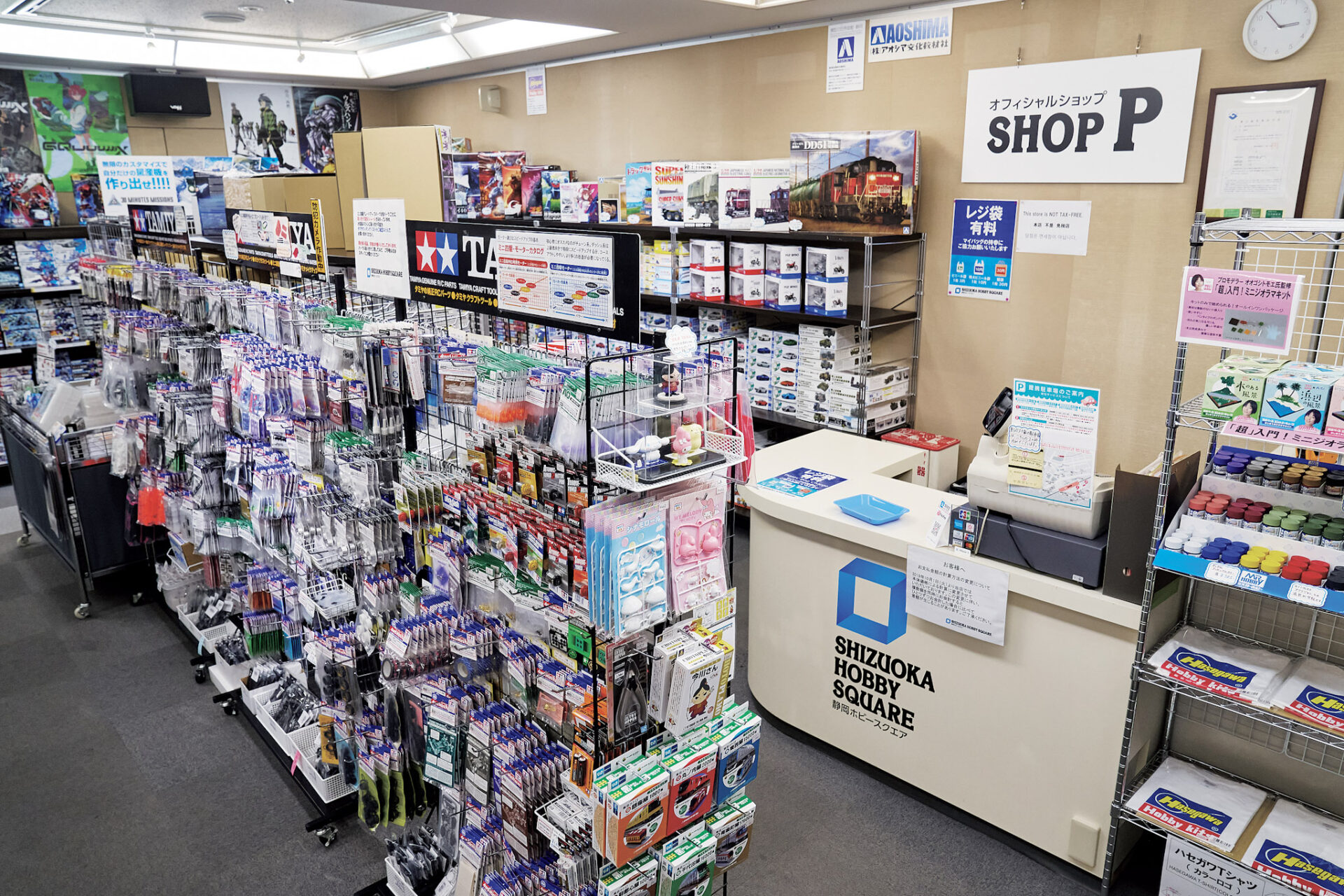 プラモデルやオリジナルグッズが買えるオフィシャルショップ。工作室が隣接しているので、その場で組み立てもOK。ツールや工具なども販売しているから安心だ。