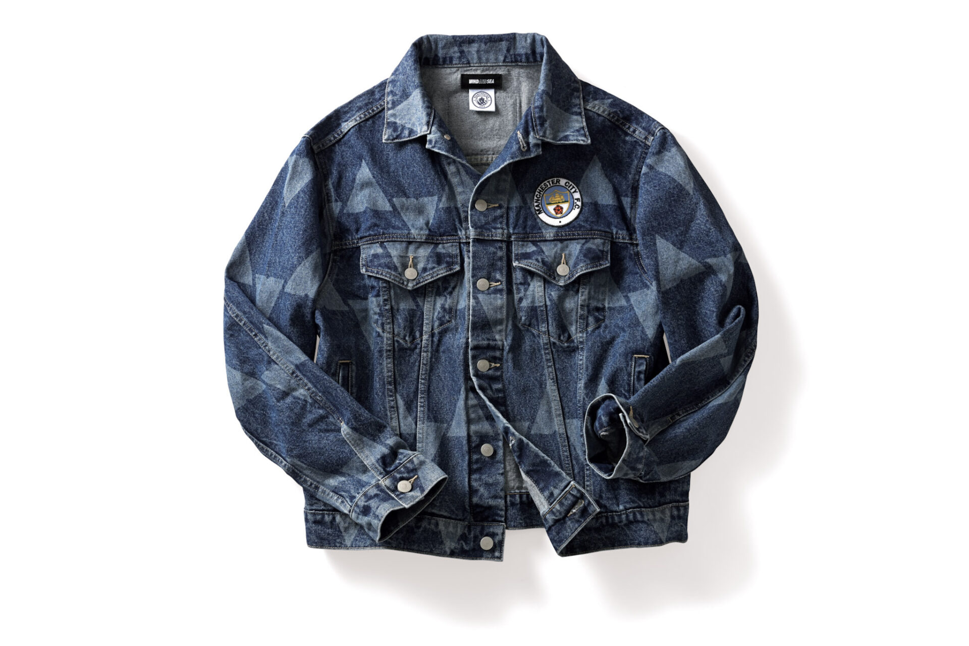 朝晩ひんやりし始める秋に、羽織るだけで雰囲気が出るのがデニムジャケット。胸元にはマンチェスター・シティFCのエンブレムバッチが配され、生地にはトライアングル柄でデニムの濃淡を生かしたデザインで定番のデニムジャケットとはひと味違う。海にも街にも合うデニムで秋を軽やかに駆け抜けろ。