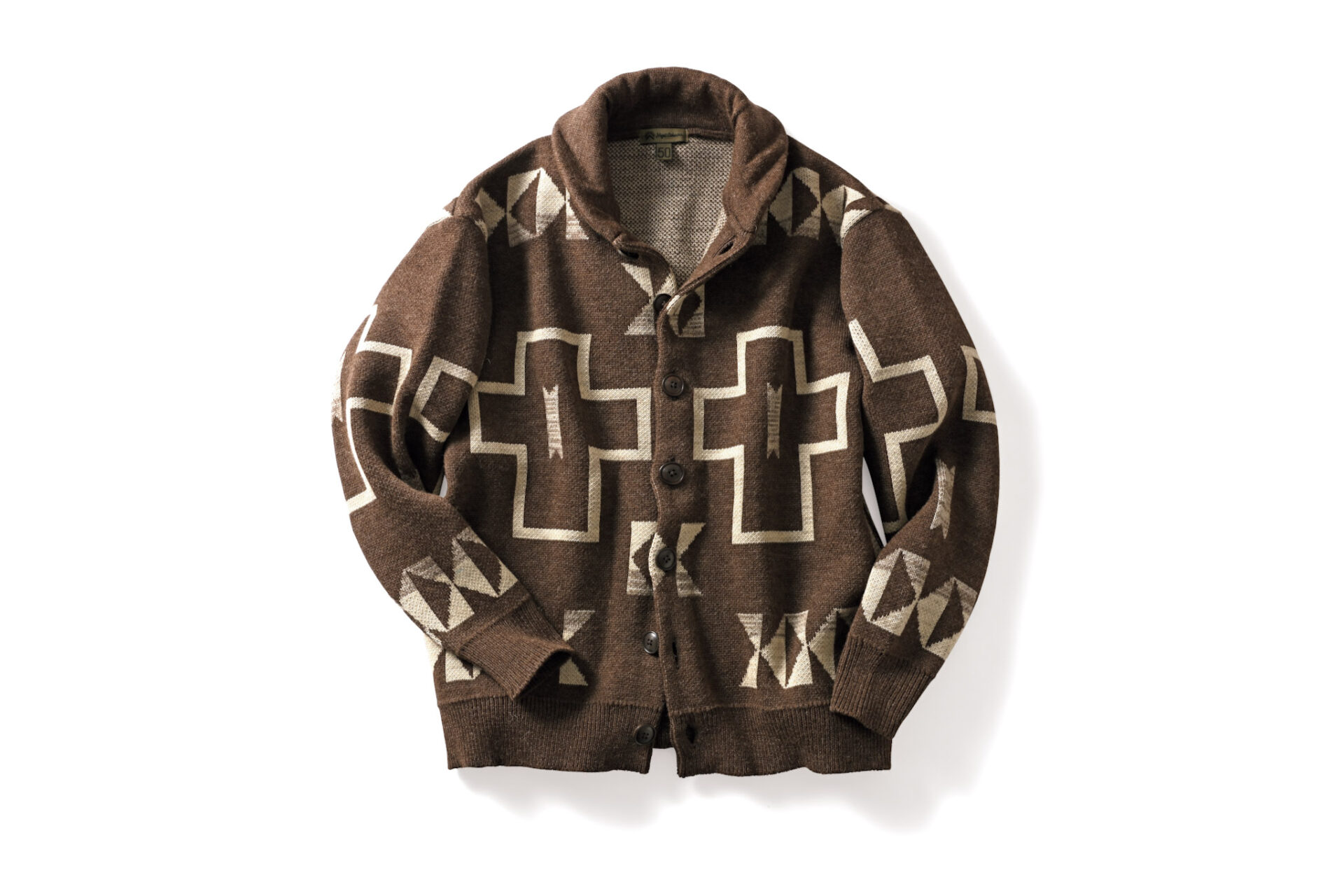 秋口に差をつけるならトライバル柄カーディガン。泥臭さと上品さの絶妙なバランスが魅力だ。Tシャツの上から羽織ってもいいが、前を閉めてもしっかりサマになる。武骨ながら少し硬めな生地感がどこか安心感すら覚える1枚。この絶妙な立ち位置が秋のスタイルにちょうどよく、肩ヒジ張らないのに、ちゃんと目をひく。
