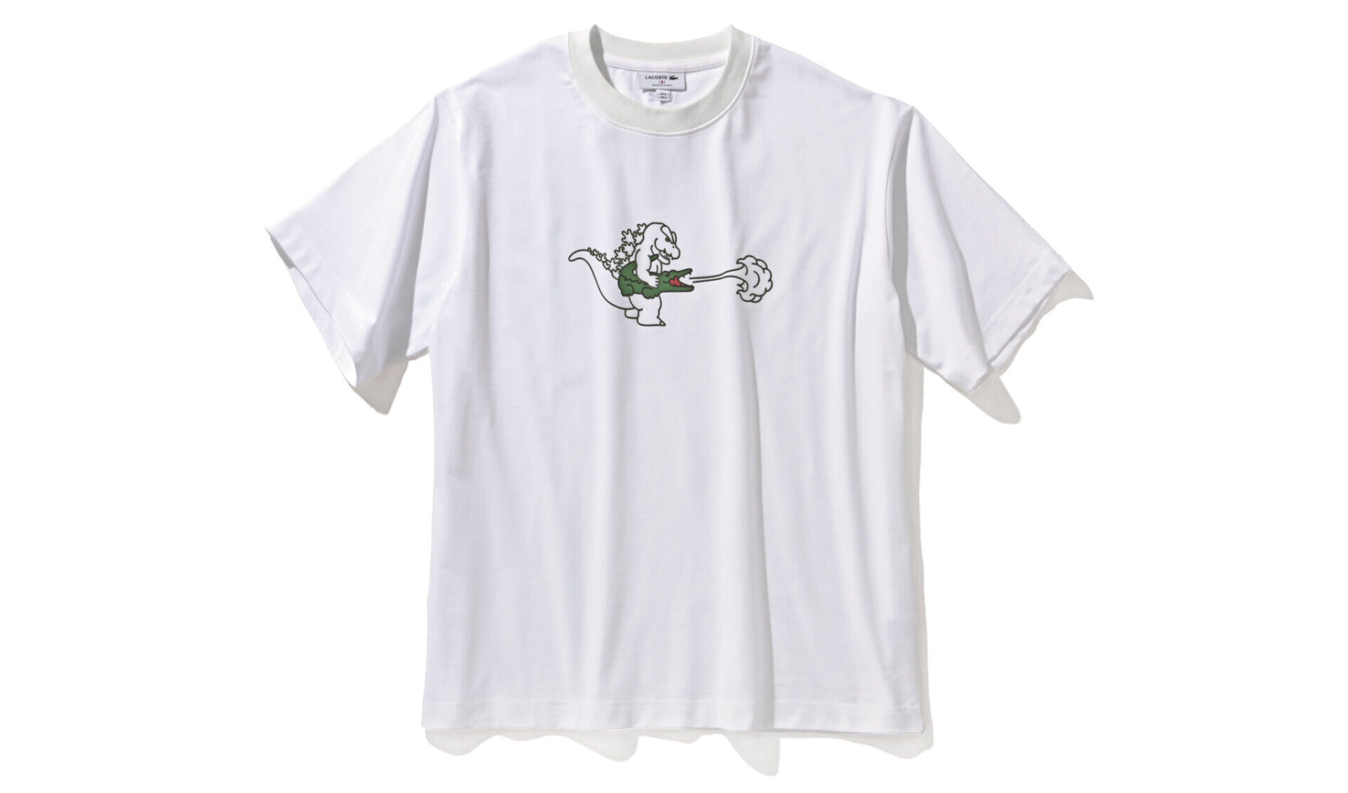 ラコステのシンボルでもあるワニを抱えるゴジラがユニーク。ワニもなんだか怒ってる? 1万5400円/ラコステ(ラコステお客様センター)