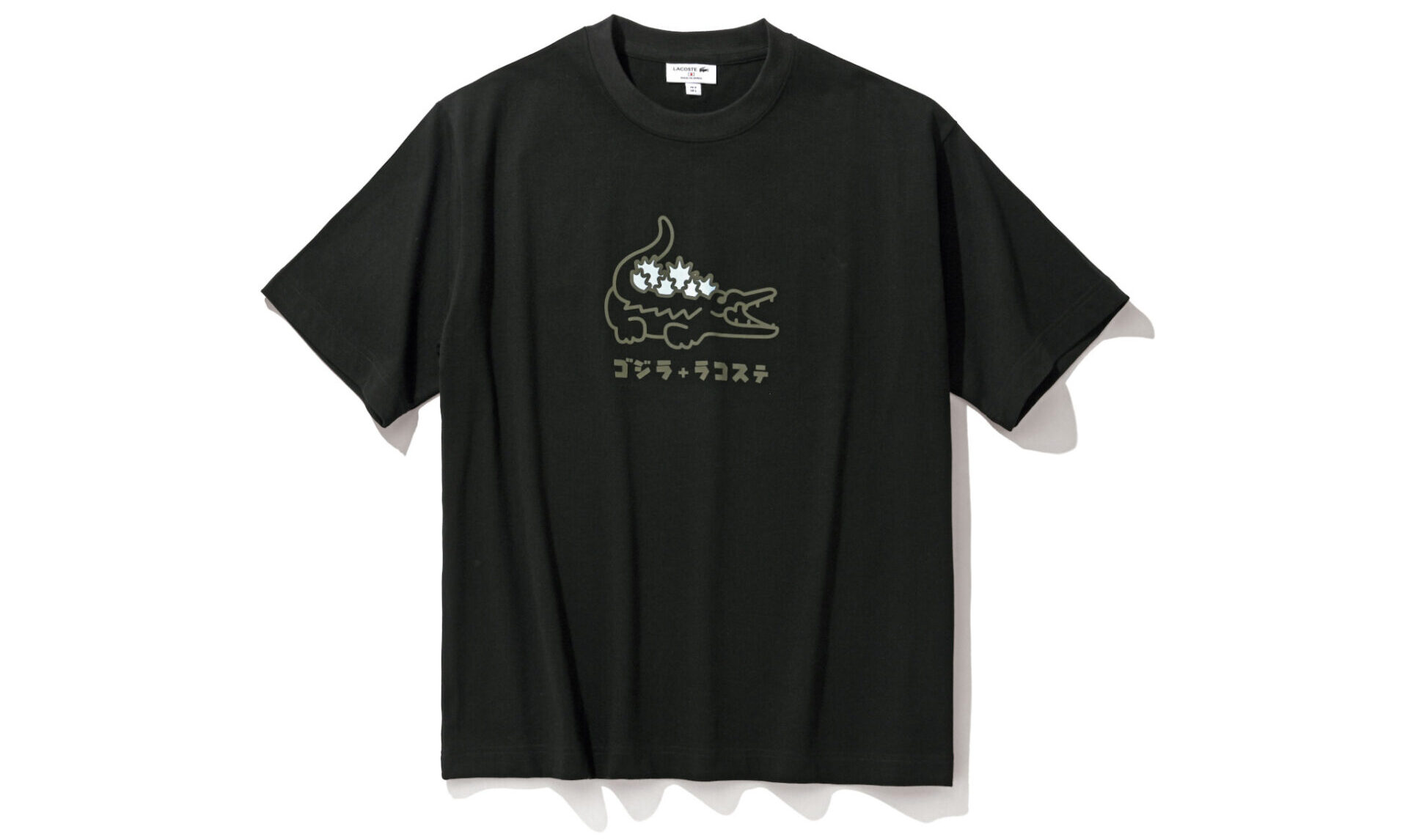ワニの背中を見ると、ゴジラと見まごう発光した背びれが! 思わず胸がぐらつくコラボレーションだ。ゴジラ+ラコステTシャツ1万5400円/ラコステ(ラコステお客様センター)