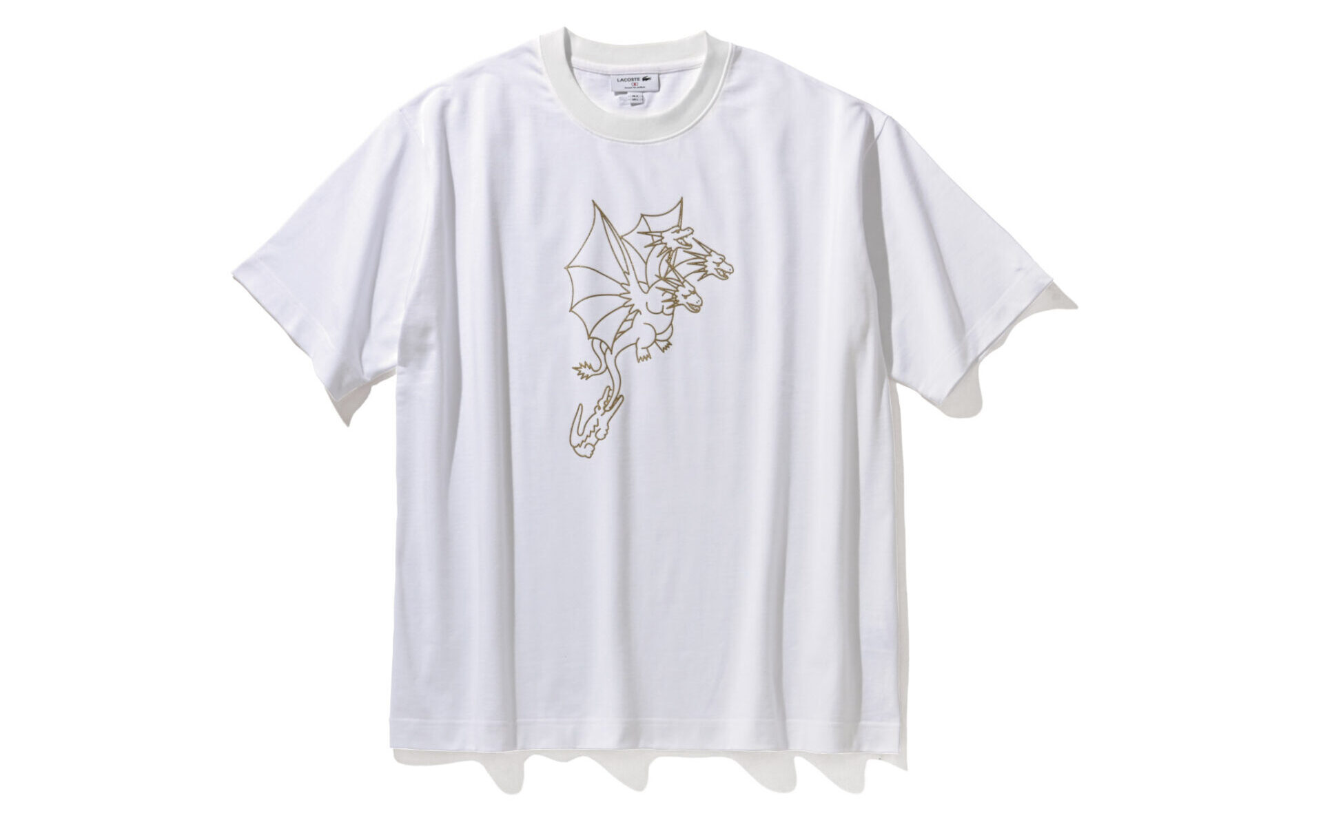 胸元にはゴジラの宿敵・キングギドラの存在感あるイラストをデザインしたTシャツ。1万4300円/ラコステ(ラコステお客様センター)