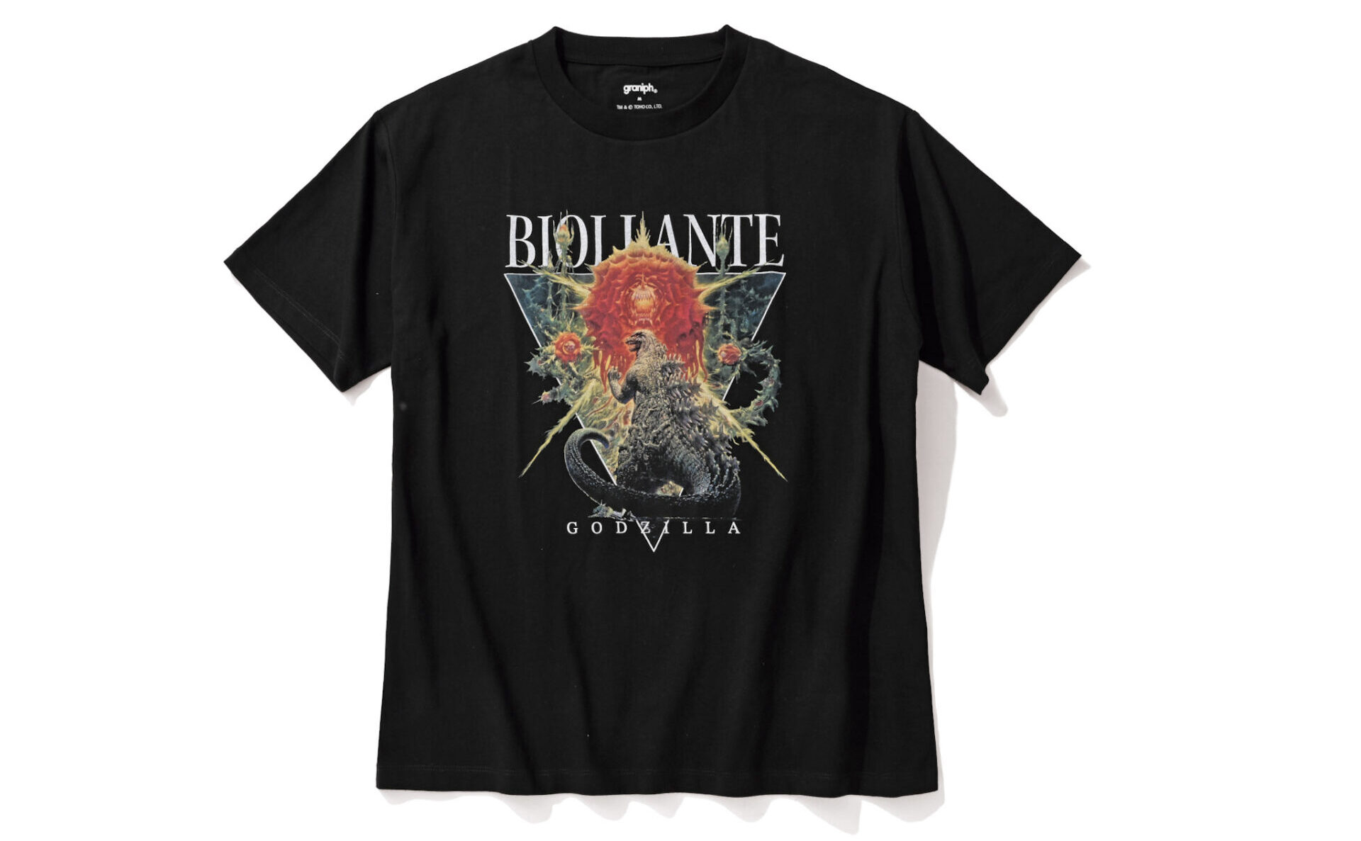 映画ポスターをベースにした、ビオランテとゴジラの対峙ビジュアルが大迫力。ビッグシルエットTシャツ4500円/グラニフ(グラニフ公式オンラインストア)