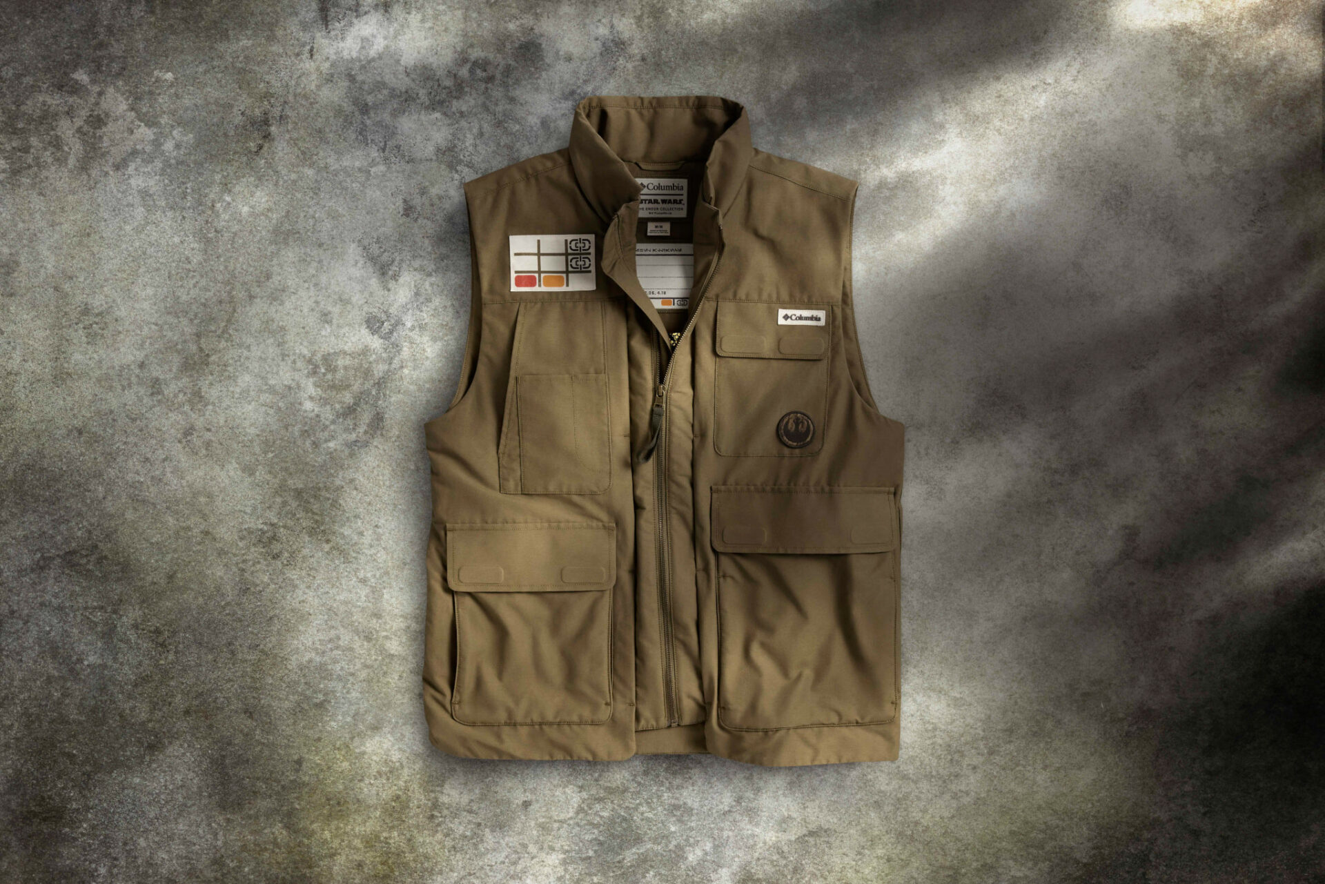 ベストは〝エンドア〟の戦いで反乱軍が身につけていた戦術装備にインスパイアされたもので、本コレクション限定の反乱軍ゴールド熱反射パターンを採用したコロンビア独自の熱反射保温テクノロジー(Omni-HeatInfinity)を搭載。