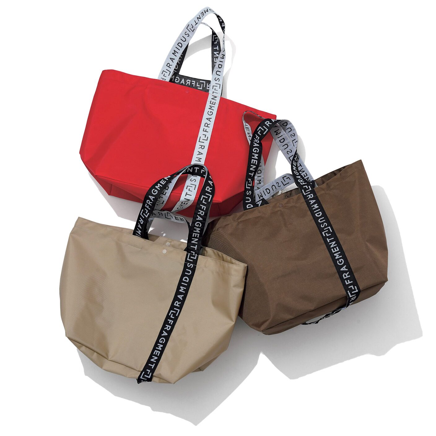 ブランド設立当初より展開している藤原ヒロシ主宰のフラグメントデザインとのコラボトート。A4サイズがしっかり収まるサイズ感だけでなく、出し入れしやすい間口の広さもポイント。ボディの色使いやハンドル部分のデザインなど、シンプルなコーディネートのアクセントとしても使えそうだ。