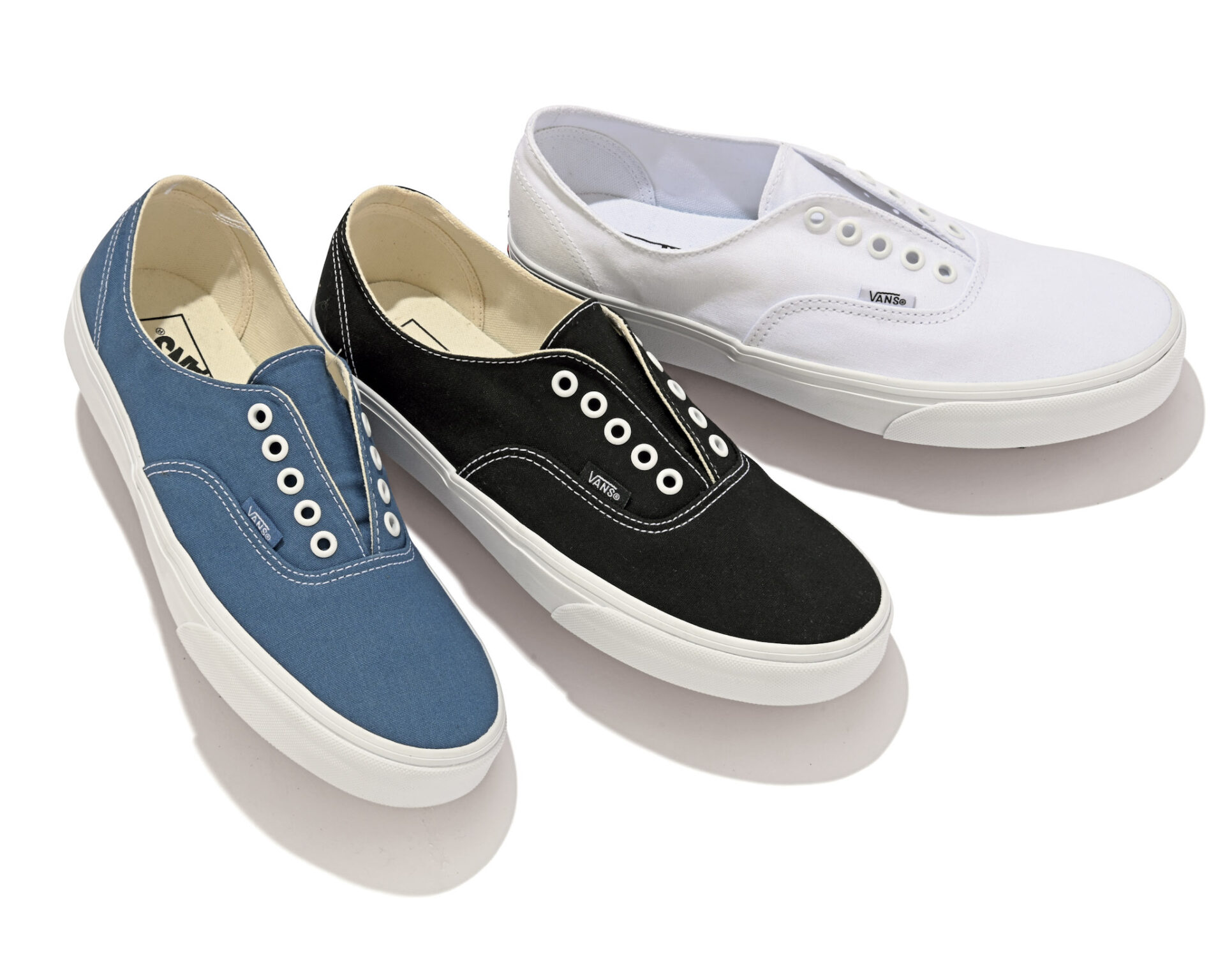波チェックから街への寄り道まで。スリッポン感覚で履けるヴァンズのオーセンティックゴアは、サーファーなら1足は持っておきたい〝新定番〟。無駄を削ぎ落としたシンプルな作りは合わせるパンツを選ばないし、各カラーに表情がある。とにかくシンプル。だからこそ全色揃えたいところだ。
