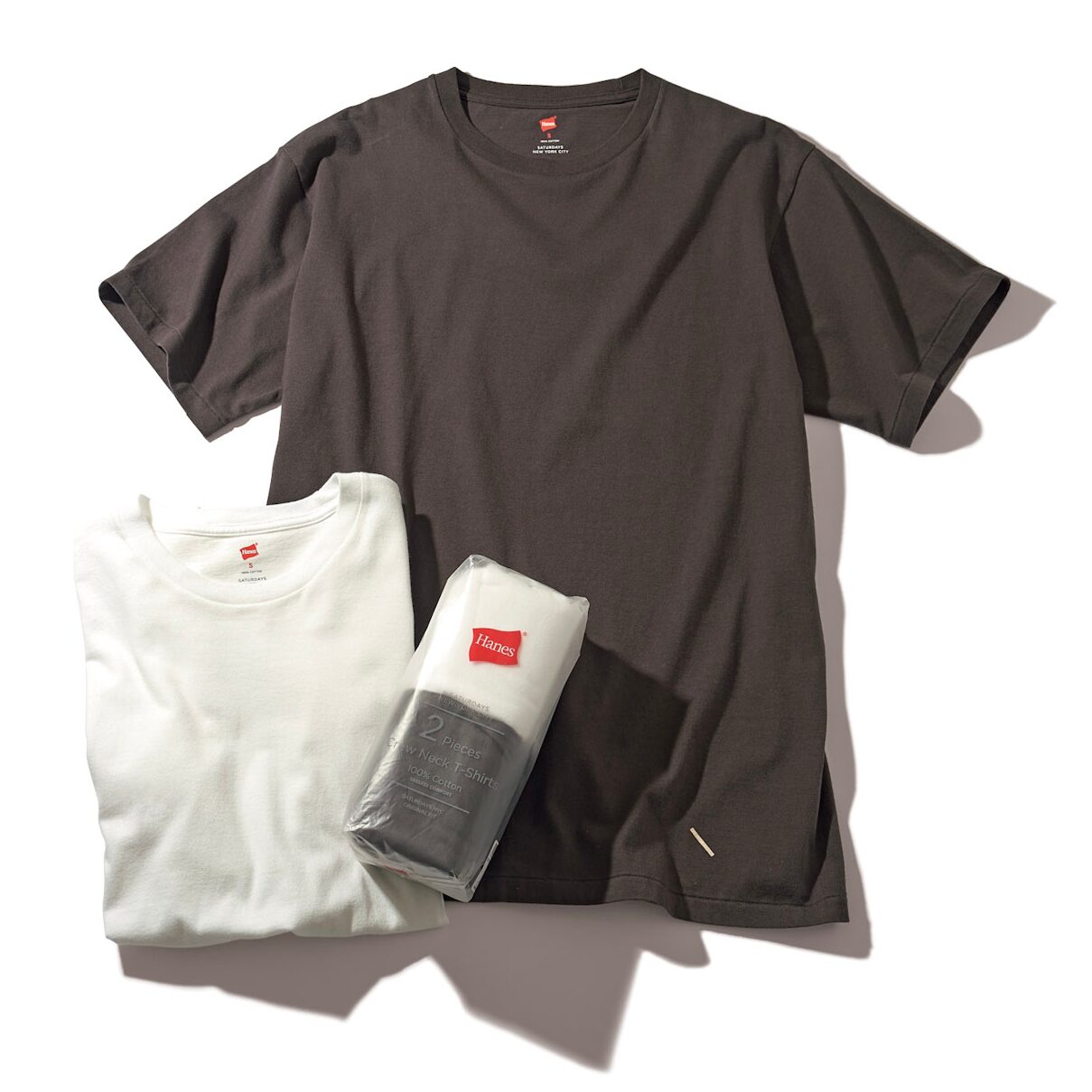 みんなが大好きなヘインズのパックT。その安心感はそのままに、サタデーズ ニューヨークシティがさりげなく個性をプラス。とくに褪せ黒のフェード感は、着込んだような味がありデニムパンツとの相性も抜群。裾に入る小さなロゴが物欲をくすぐるアクセントになるし、2枚入りという実用性も最高の一言。