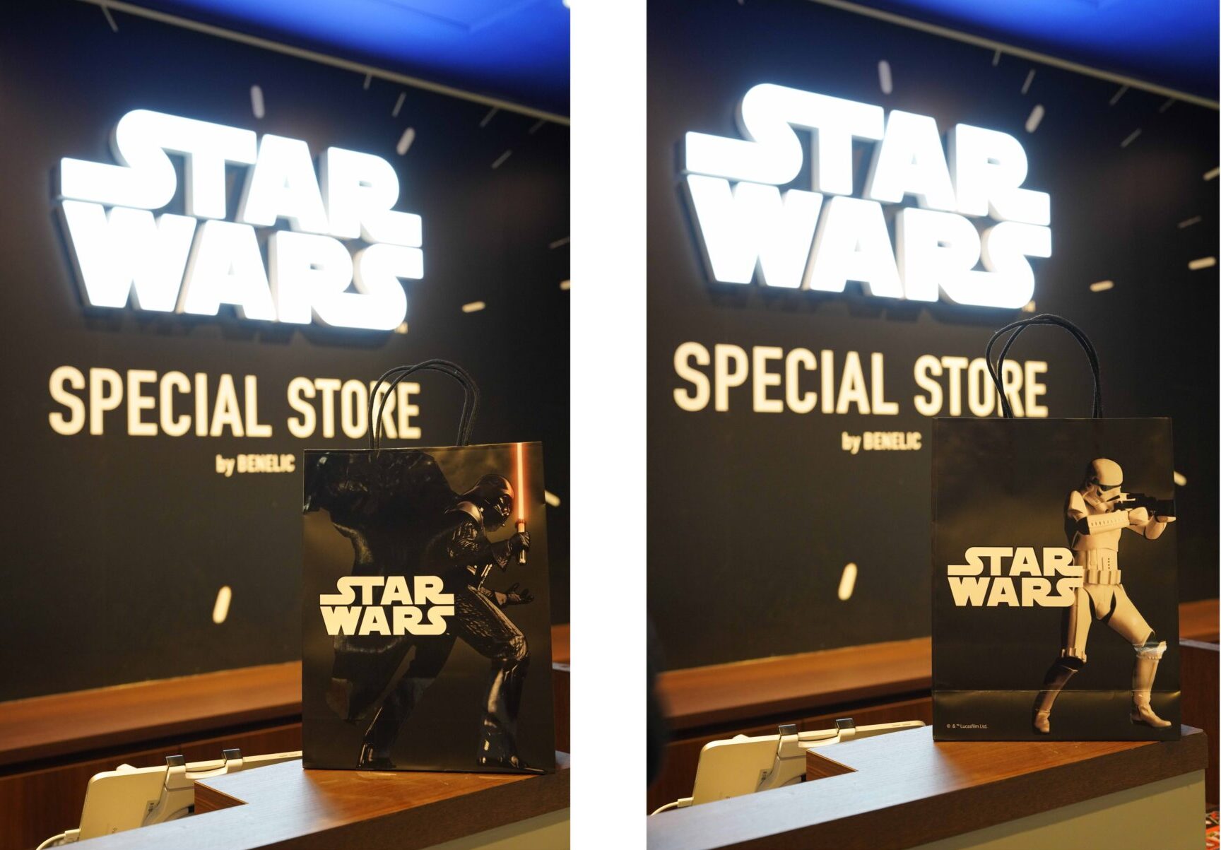 実はリニューアルオープンと同時に、数量限定のショッパーが使われていたらしい(表:ダース・ベイダー、裏:ストームトルーパー)。手に入れた人はごく僅か!? なんだって!