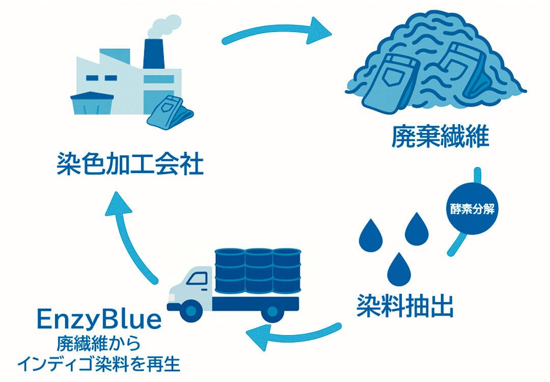 最古のジーンズをただ単に復刻させたわけではない。今回の商品には最新技術で開発されたデニム生地を採用しているのだ。このデニム生地の染色には一般的な合成インディゴではなく、廃繊維から再生させたリサイクルインディゴ染料〝EnzyBlue(エンジーブルー)〟を使用。まさに、最新の技術開発により出来上がったジーンズと言えるはず。