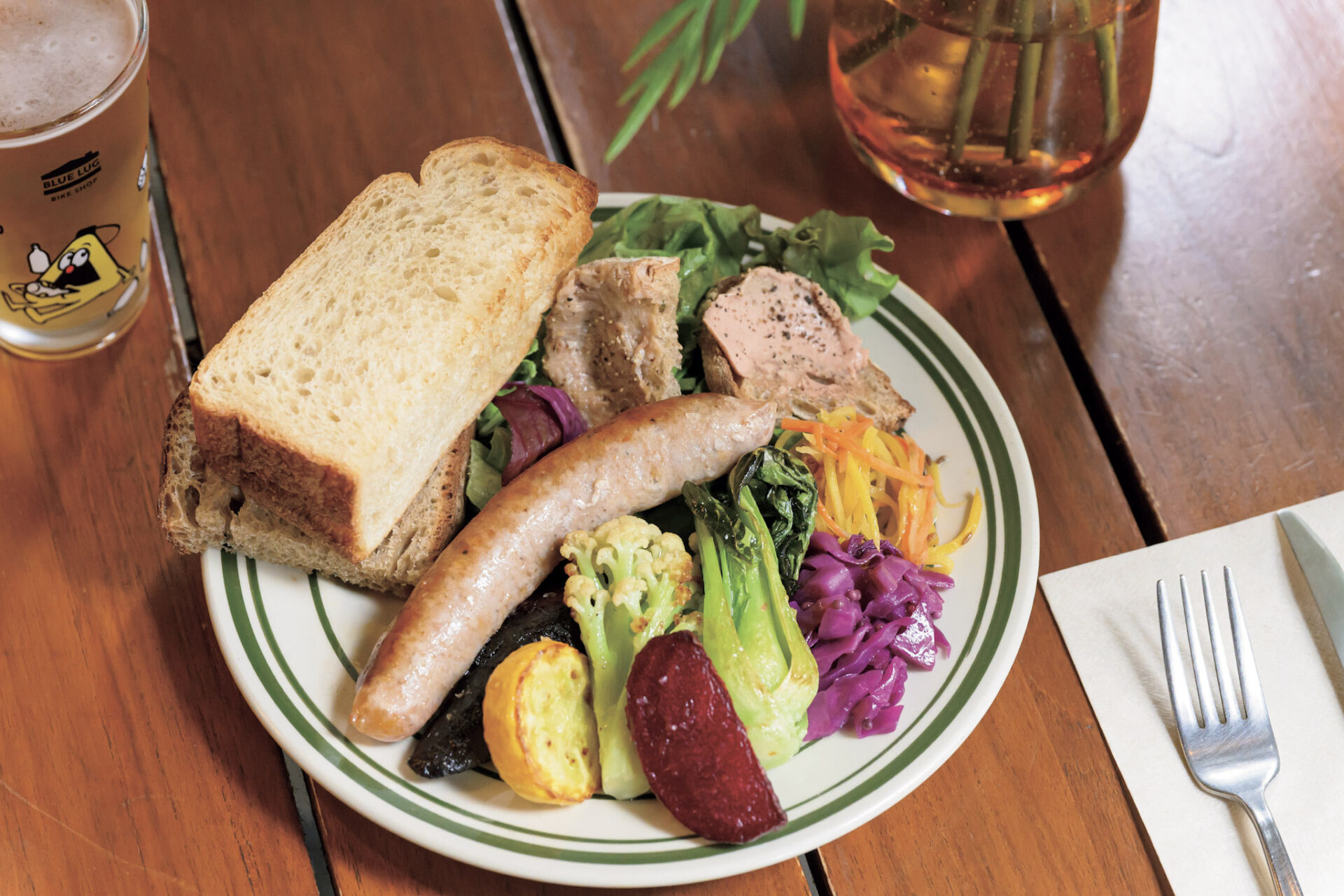 自転車店「ブルーラグ」が営む〝みんなの喫茶・食堂・酒場〟。名前の由来は自転車のフレームをつなぐ部品の〝ラグ〟からきている。そしてそこには、人と人、場所と場所をつなぐ存在になればという思いが込められているそうだ。朝から晩まで、コーヒー、クラフトビールやナチュラルワイン、食事などを楽しむ人で賑わう。