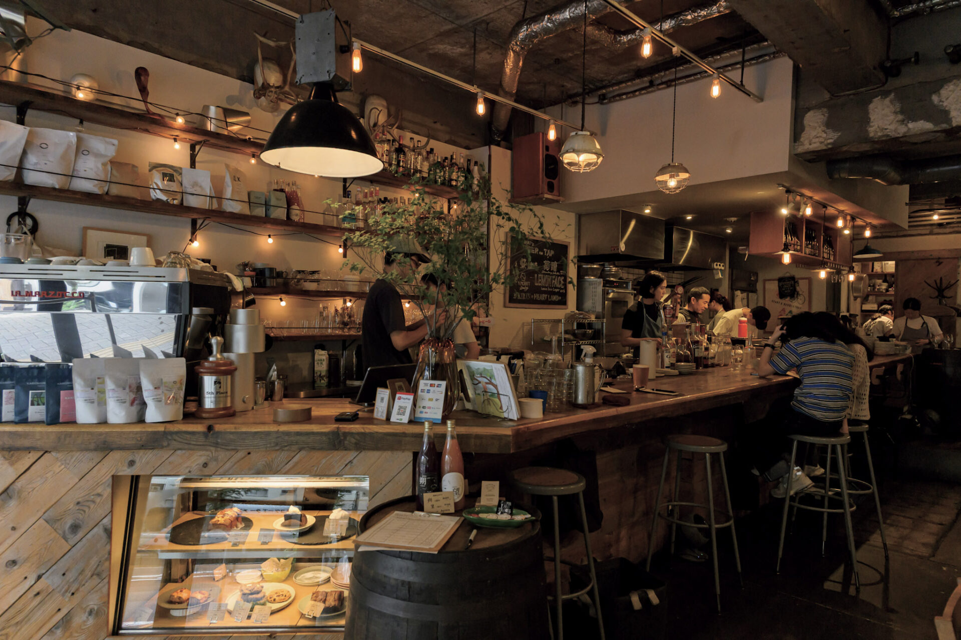 自転車店「ブルーラグ」が営む〝みんなの喫茶・食堂・酒場〟。名前の由来は自転車のフレームをつなぐ部品の〝ラグ〟からきている。そしてそこには、人と人、場所と場所をつなぐ存在になればという思いが込められているそうだ。朝から晩まで、コーヒー、クラフトビールやナチュラルワイン、食事などを楽しむ人で賑わう。