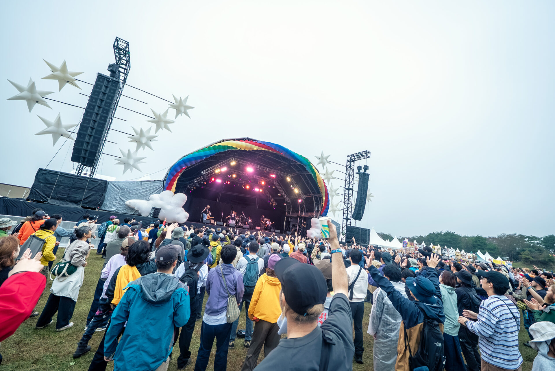 このほかにも、BIALYSTOCKSや鬼の右腕、んoon、PEARL & THE OYSTERSなどがそれぞれの時間帯で違う景色をつくっていて、柴田聡子(BAND SET)やFULLHOUSE のステージ前にも自然と人が集まっていた。どのアクトにも朝霧らしい流れがあって、フィールドのどこにいても音が続いていく一日だった。